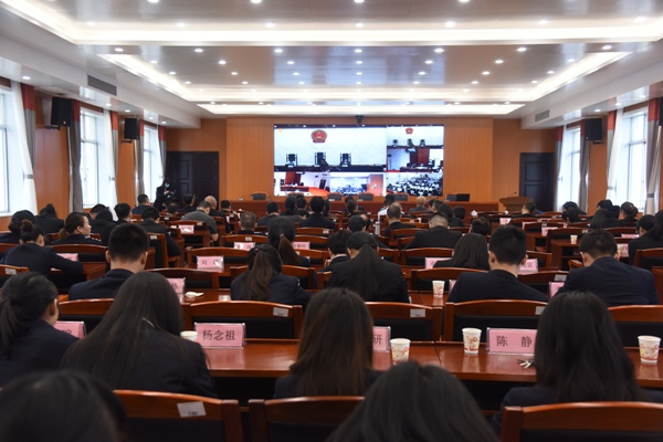 2021年5月19日,岳阳县人民法院组织全体工作人员观看该院审理的一起职务犯罪案件庭审直播,以典型真实的案例“现场授课”,引导在场人员坚决筑牢反腐倡廉、拒腐防变的思想道德防线,进一步增强队伍教育整顿实效,切实发挥以案为鉴、以案促改的警示教育作用。岳阳县人民政府组织相关职能部门领导班子成员参与旁听。