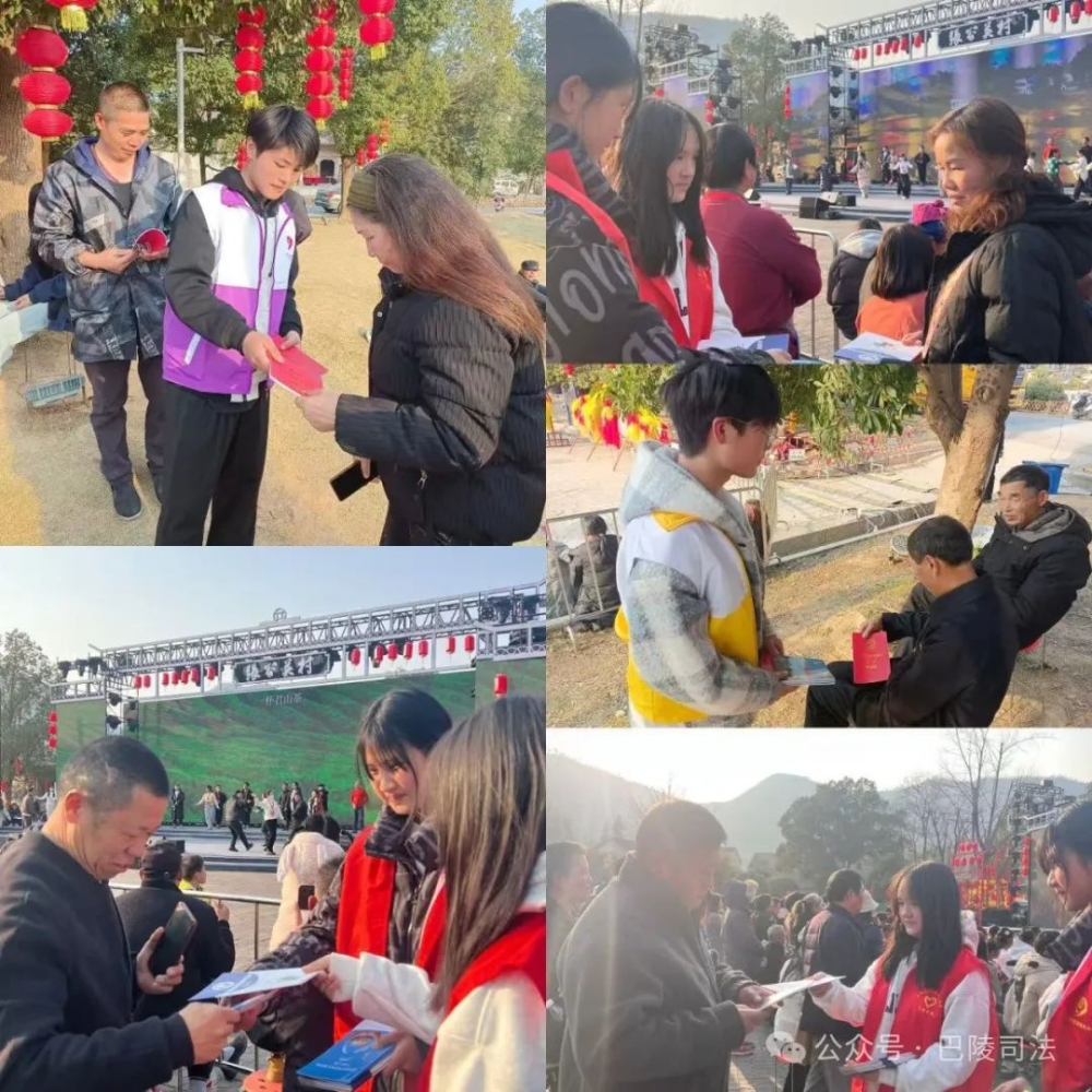 舞台上,灯光璀璨,演员们正身着节日盛装,进行着演练;舞台下,大学生普法志愿者们身着统一的志愿者服装,穿梭在人群中,热情地向村民们发放宪法、民法典、未成年人保护法以及预防帮信罪彩页等宣传资料。他们耐心细致地解答村民们的法律咨询,用通俗易懂的语言,将法律知识讲解得深入浅出,让村民们听得津津有味。