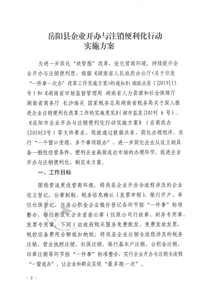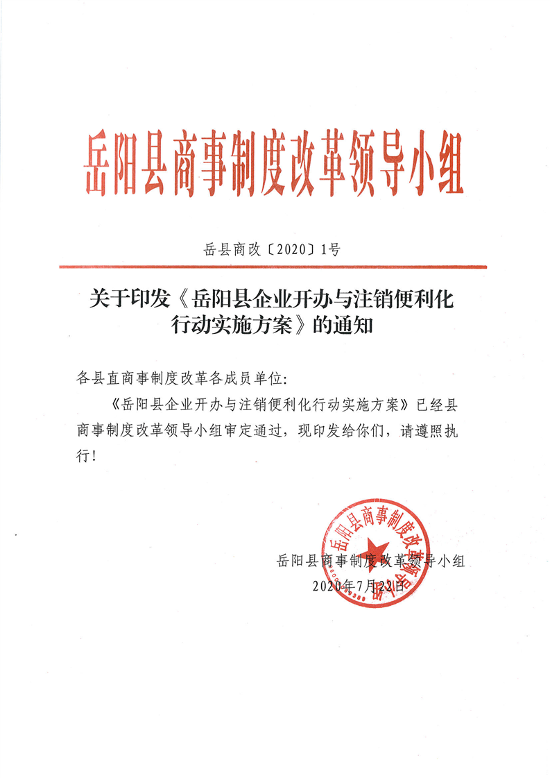 岳阳县市场监督管理局:关于印发《岳阳县企业开办与注销便利化行动实施方案》的通知