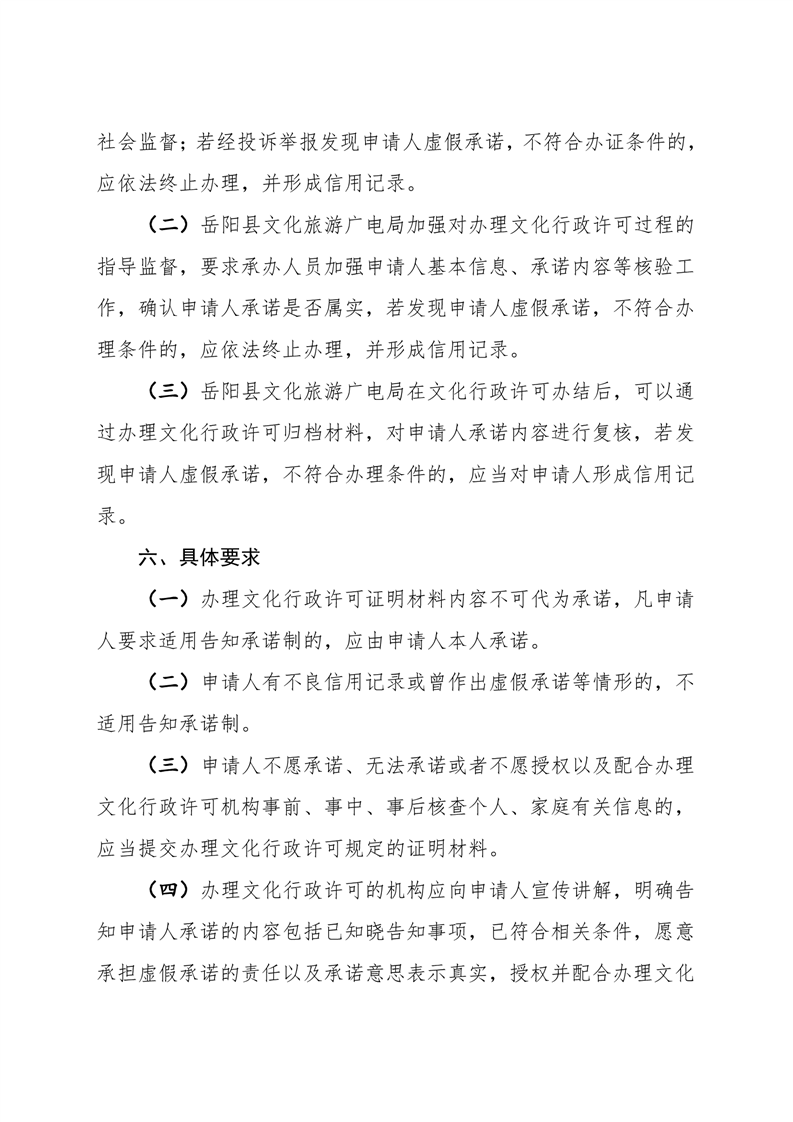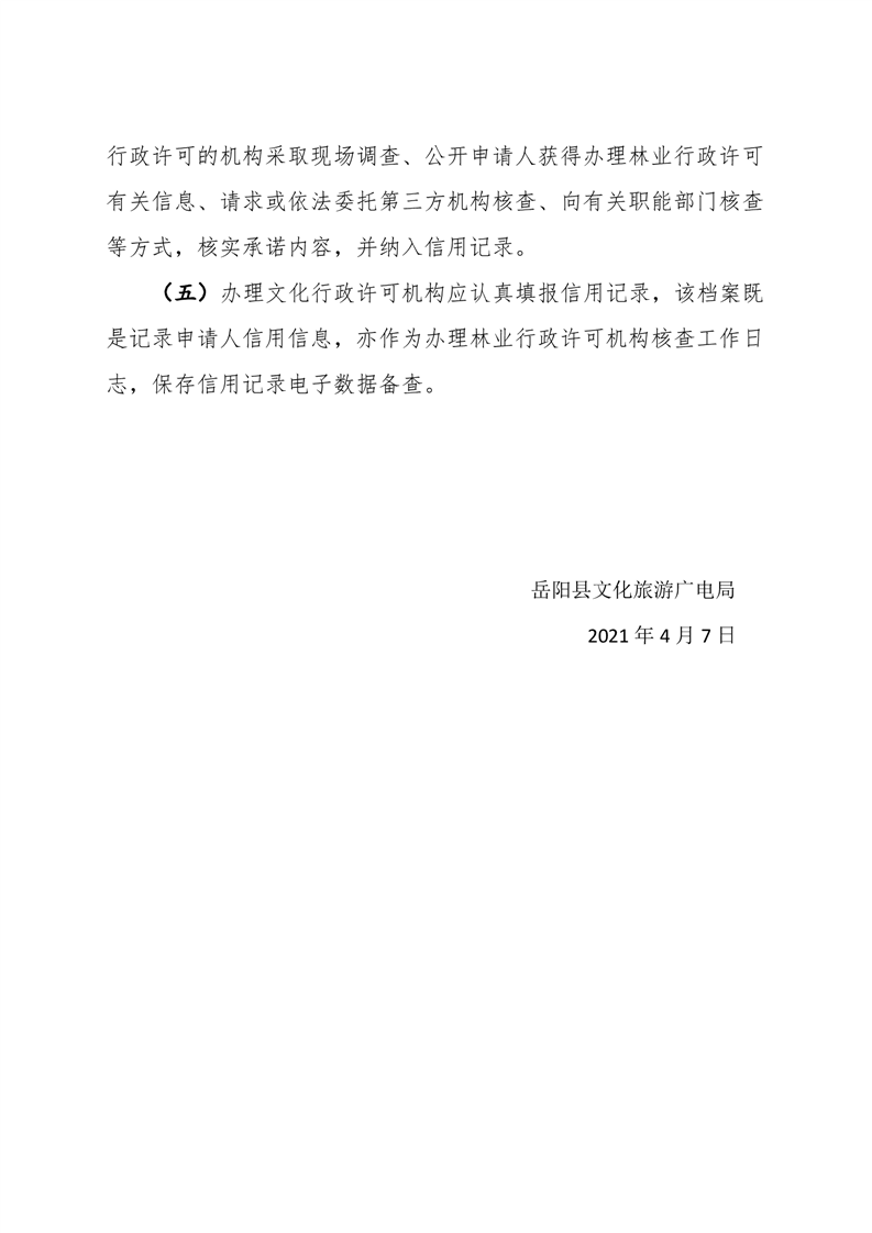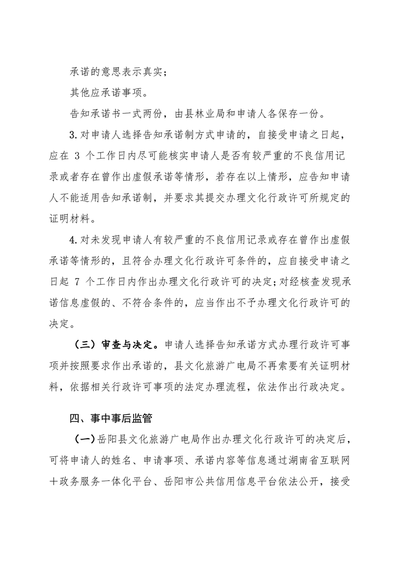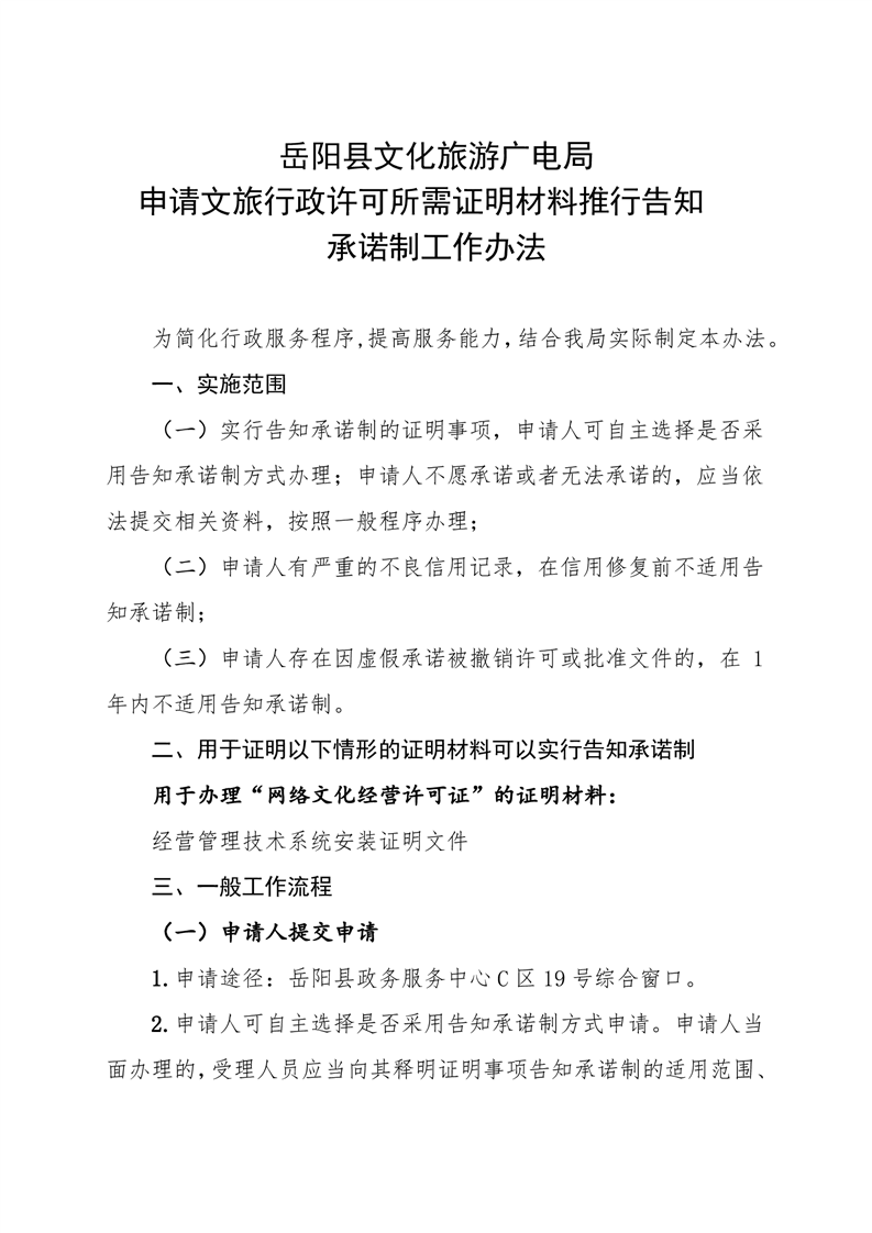 岳阳县文化旅游广电局申请文旅行政许可所需证明材料推行告知承诺制工作办法