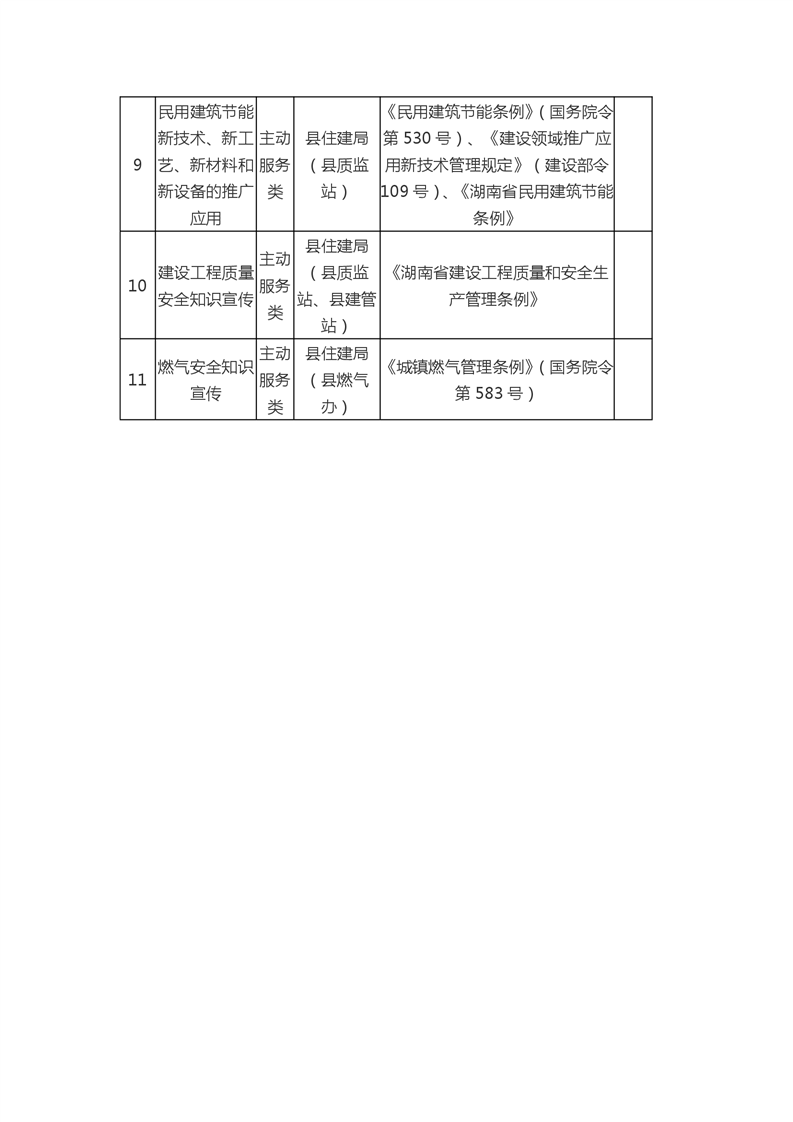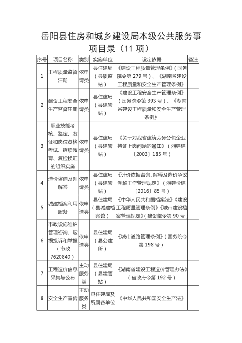 岳阳县住房和城乡建设局本级公共服务事项目录(11项)