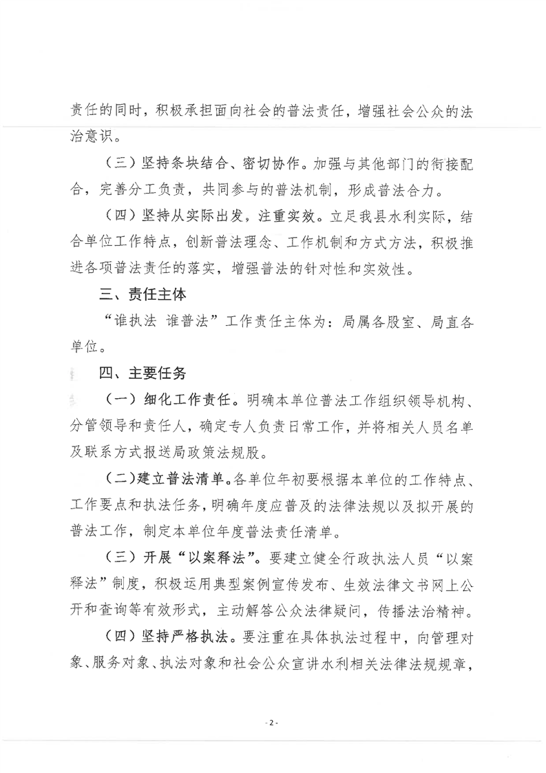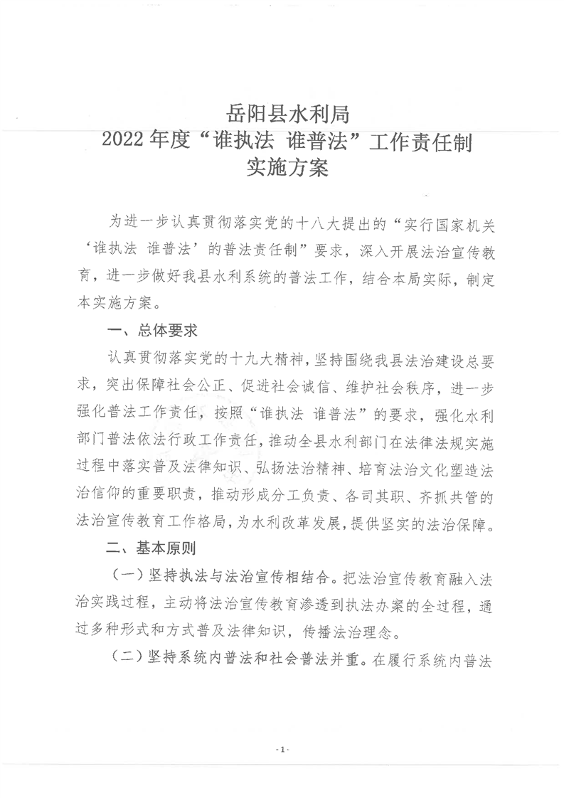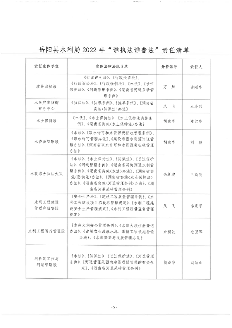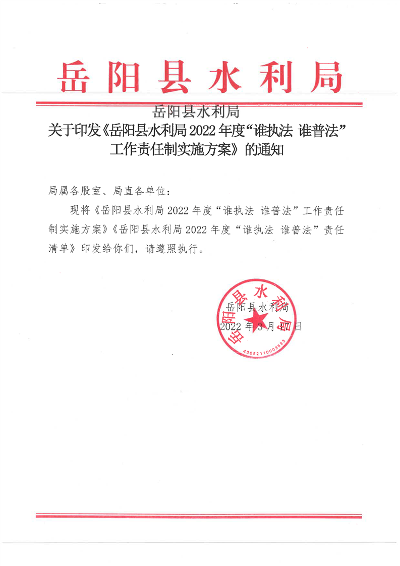 岳阳县水利局关于印发《岳阳县水利局2022年度“谁执法 谁普法”工作责任制实施方案》的通知》
