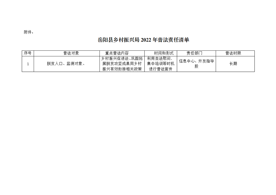 岳阳县乡村振兴局2022年度“谁执法谁普法”责任清单