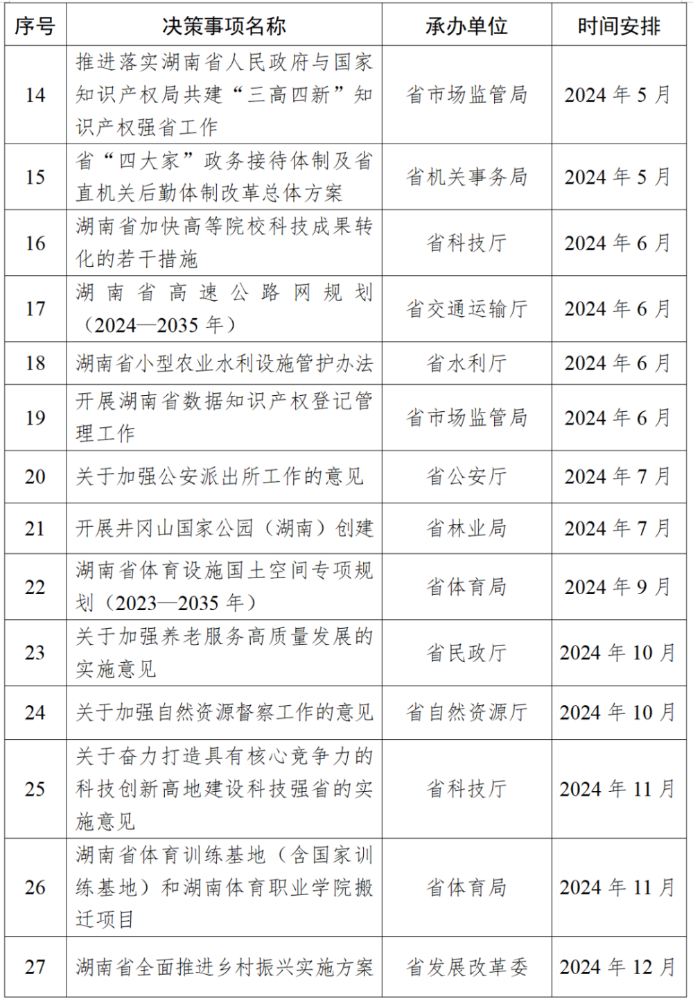关于印发《湖南省人民政府2024年度重大行政决策事项目录》的通知