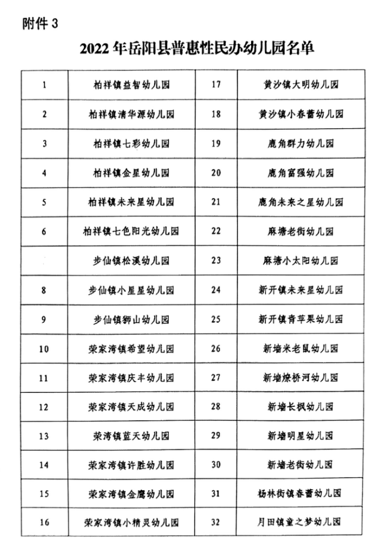3.岳阳县2022年普惠性民办幼儿园名单