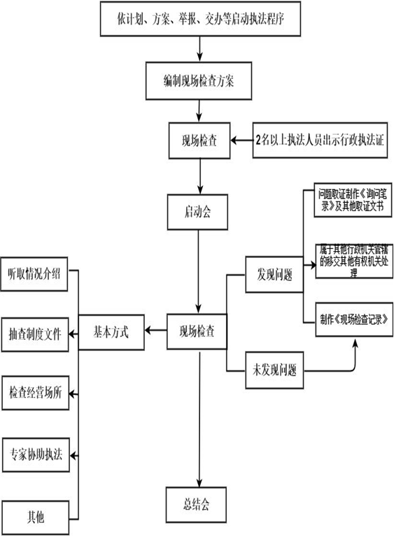 编制现场检查方案——现场检查——制作现场检查记录,详见附件1现场检查流程。