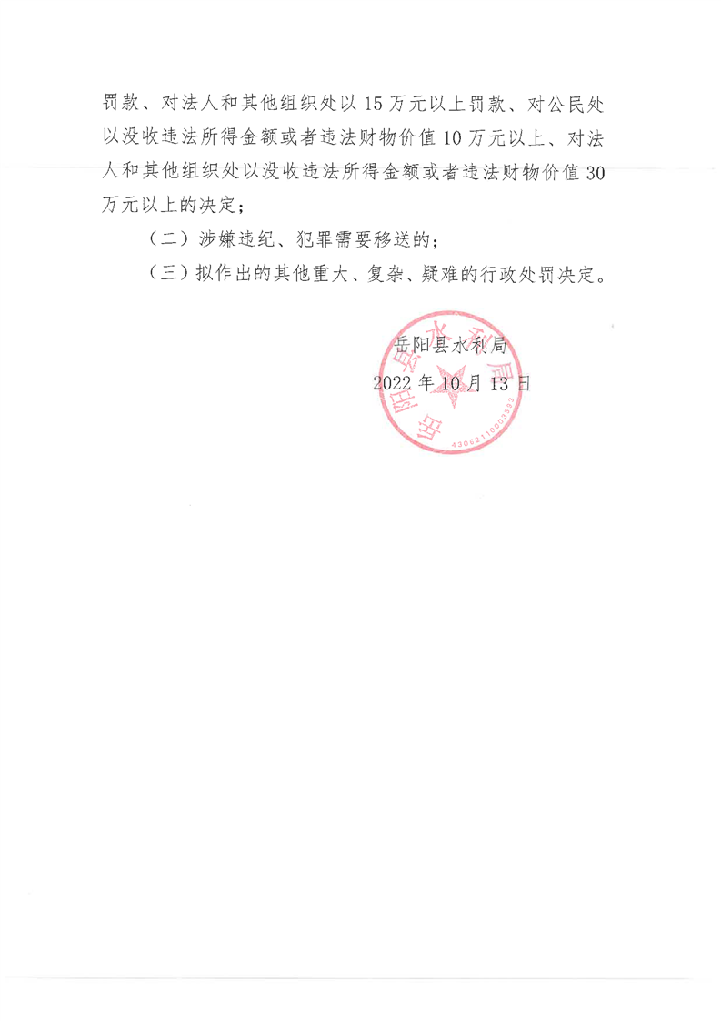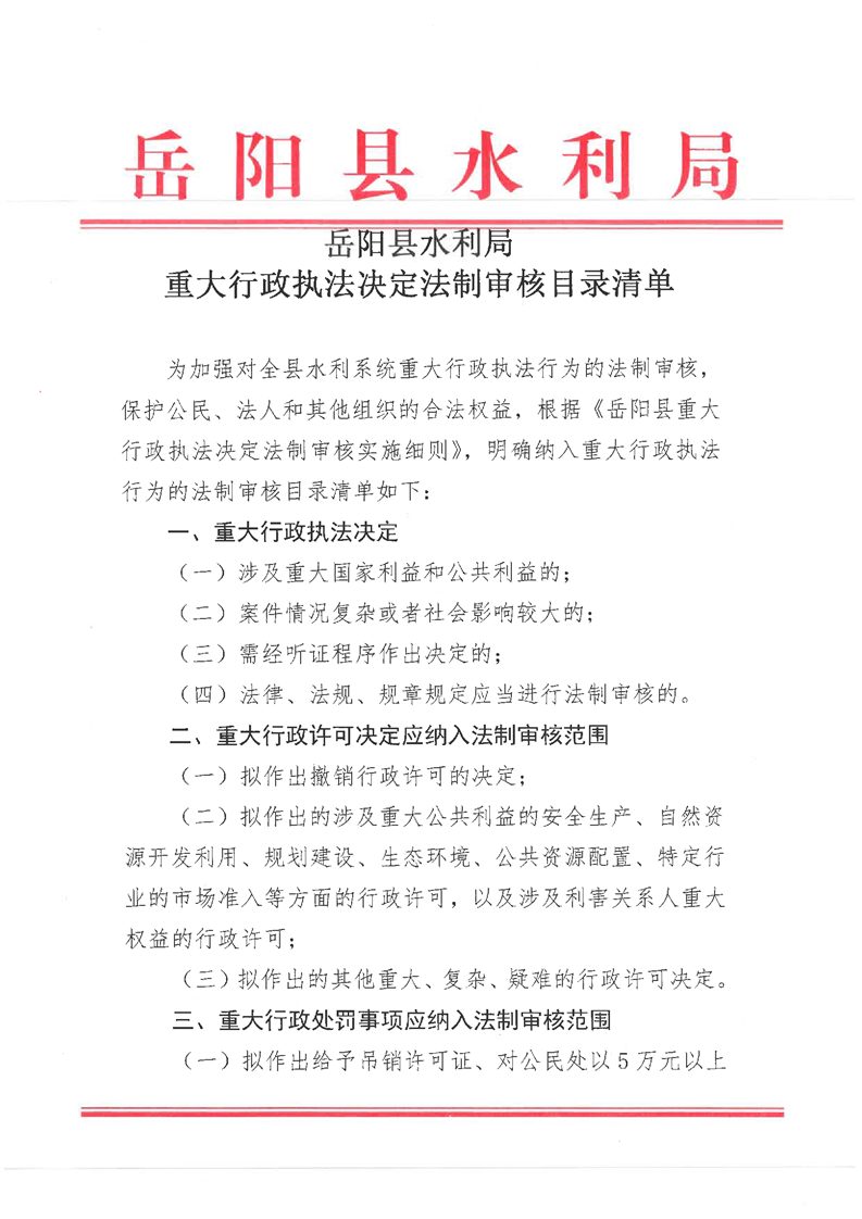 岳阳县水利局重大行政执法决定法制审核目录清单