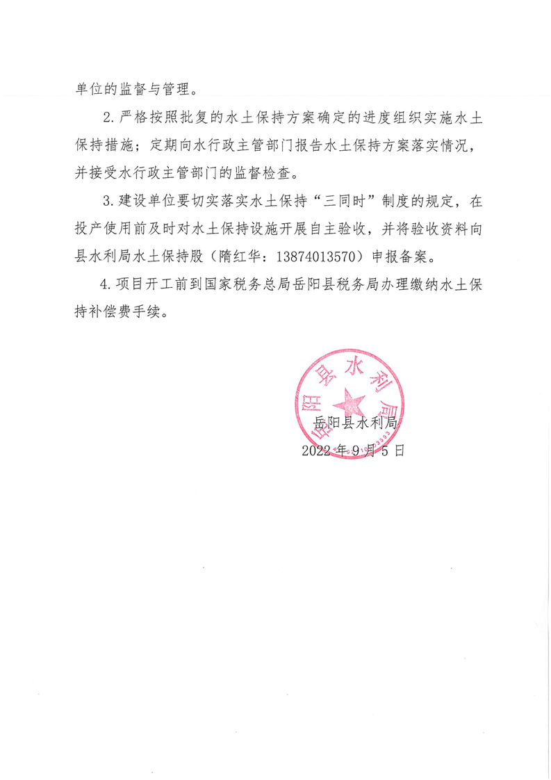 岳阳县水利局关于同意《固达建材商品混凝土生产线建设项目水土保持方案报告表》的批复
