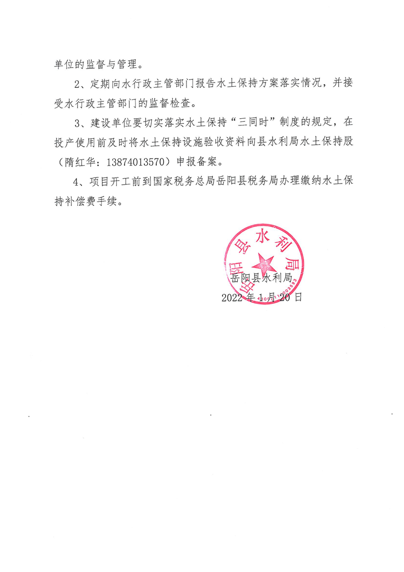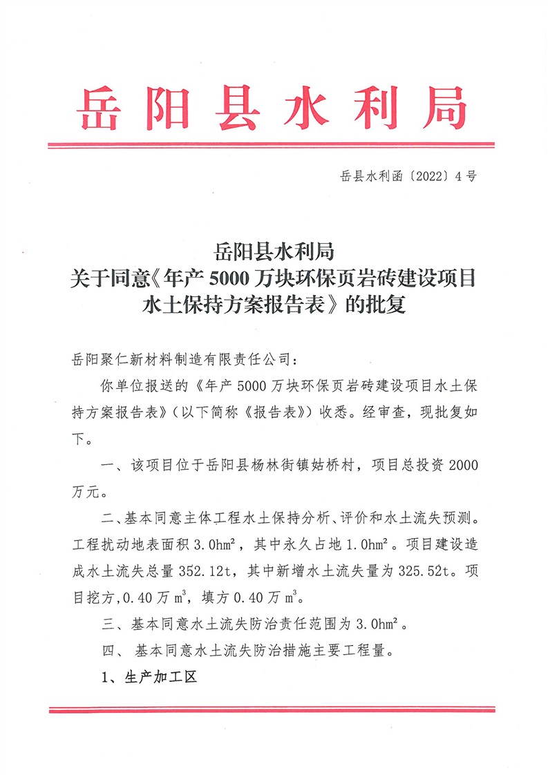 岳阳县水利局关于同意《年产5000万块环保页岩砖建设项目水土保持方案报告表》的批复