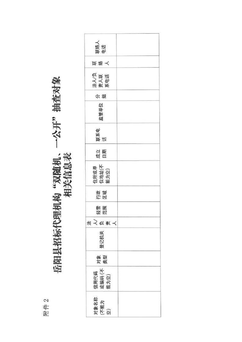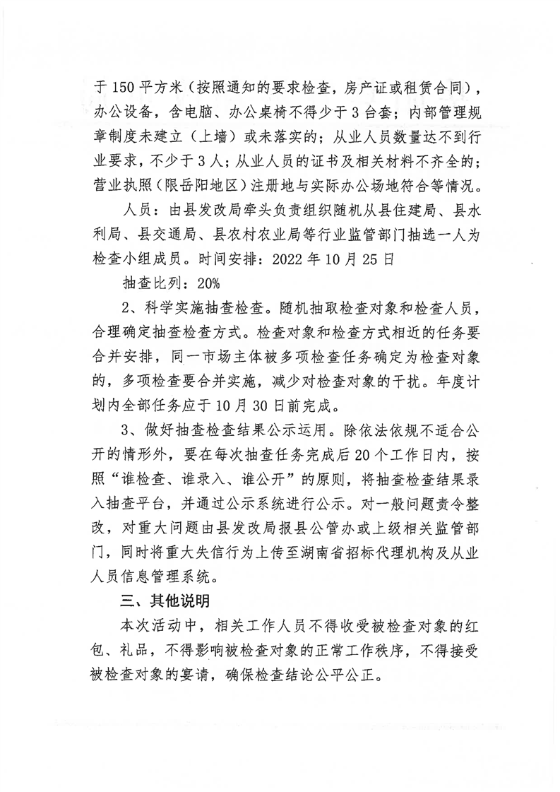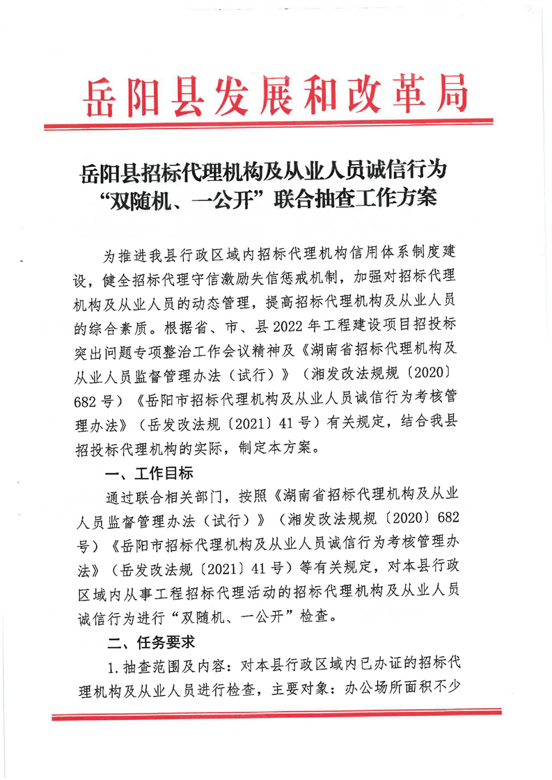岳阳县水利局:岳阳县招标代理机构及从业人员诚信行为“双随机、一公开”联合抽查工作方案