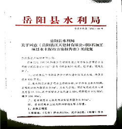 岳阳县水利局关于同意《岳阳县江天建材有限公司砂石加工项目水土保持方案报告表》的批复