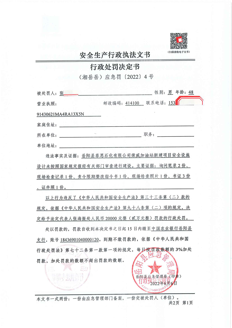 安全生产行政处罚决定公示(6月)