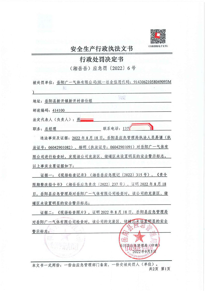 岳阳县应急管理局:安全生产行政处罚决定公示(9月第一批)