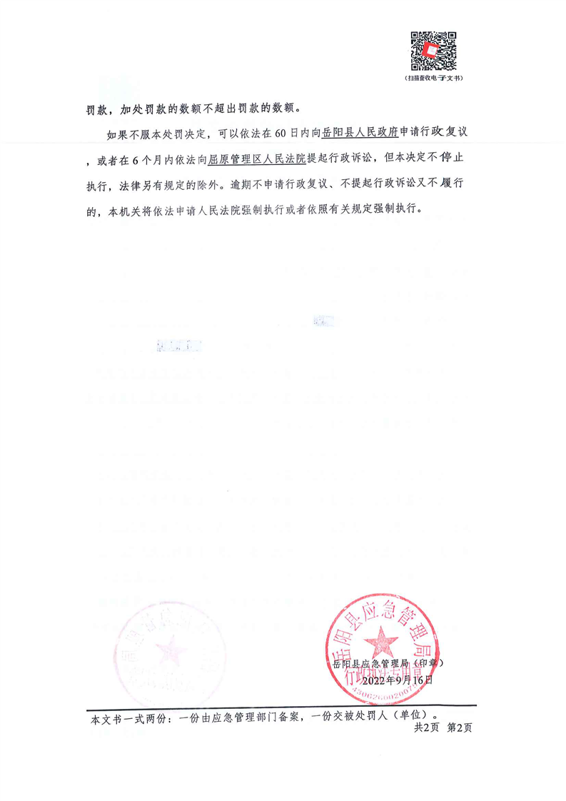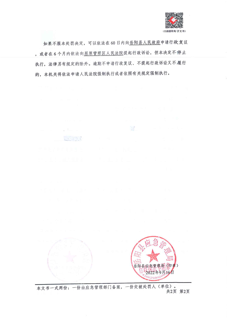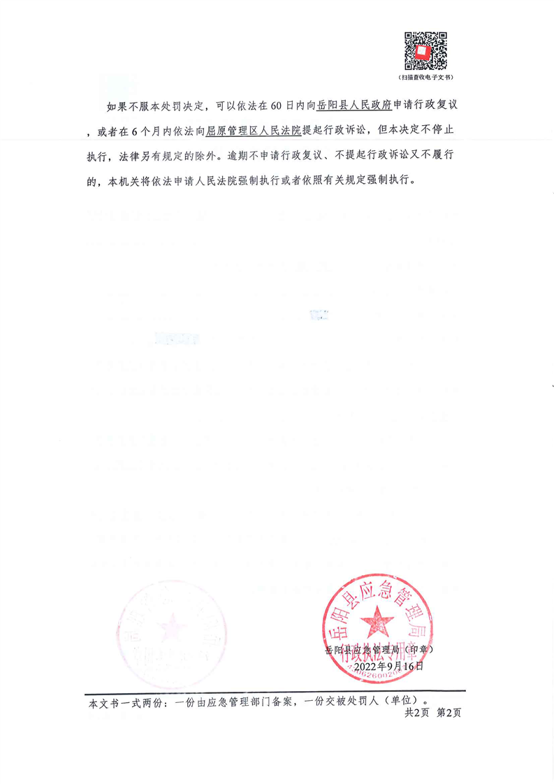 岳阳县应急管理局:安全生产行政处罚决定公示(9月第二批)