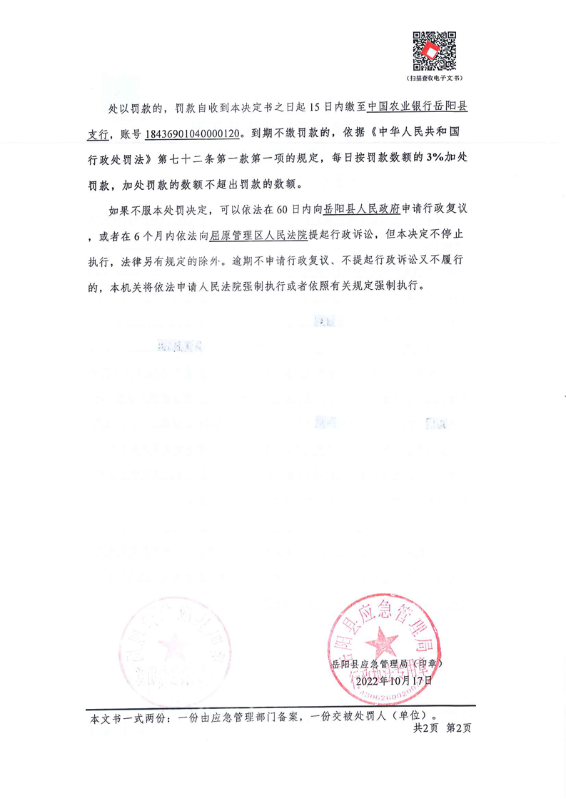 岳阳县应急管理局:安全生产行政处罚决定公示(10月第一批)