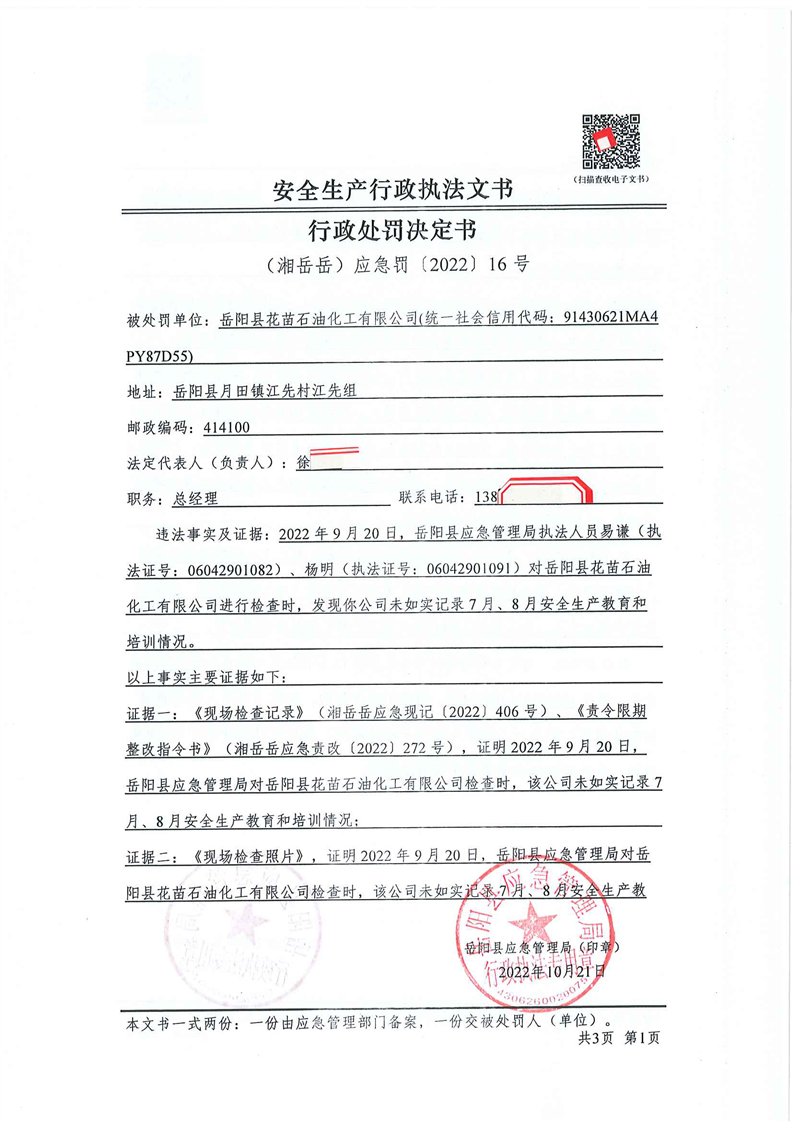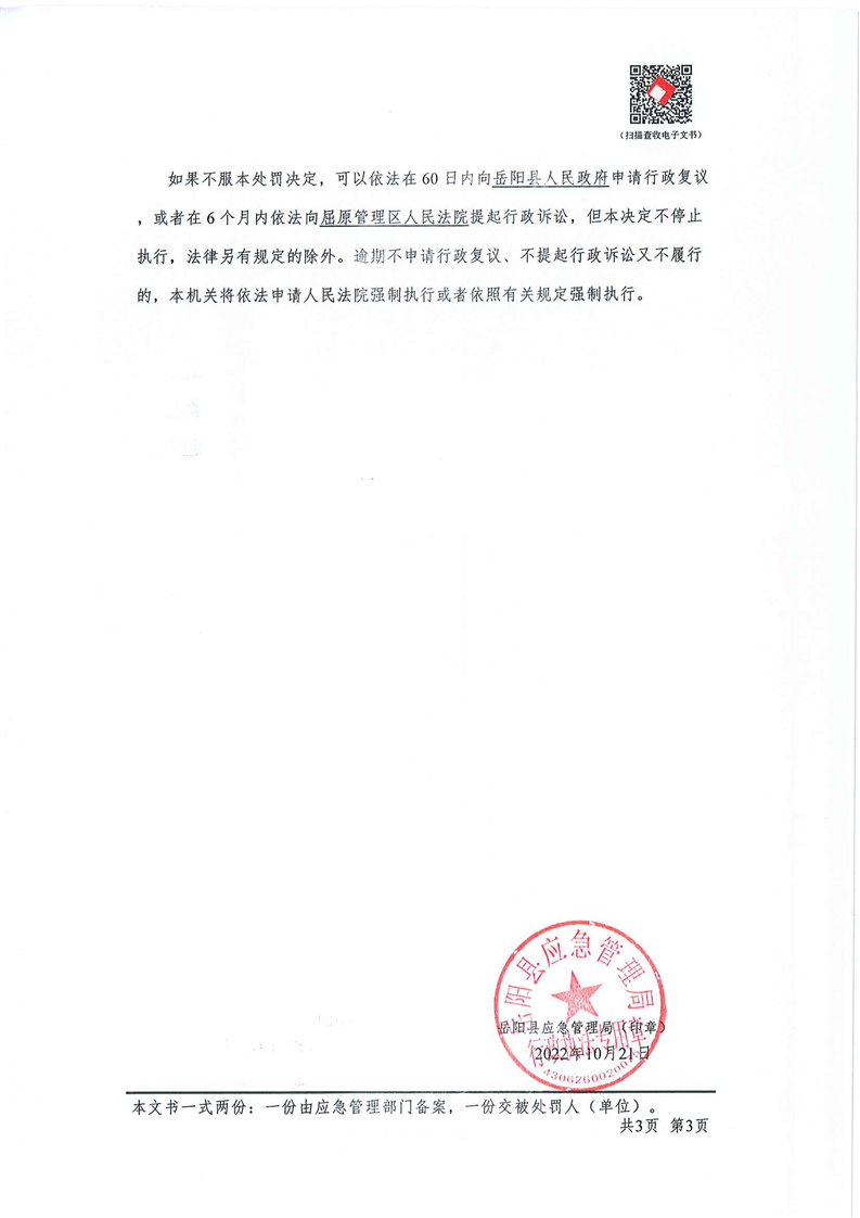 岳阳县应急管理局:安全生产行政处罚决定公示(10月第二批)