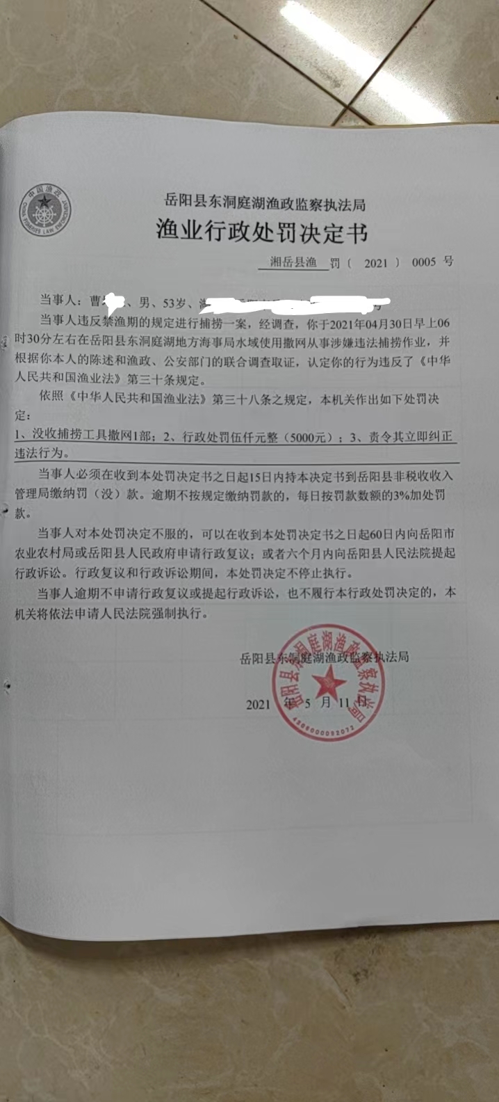 曹某处罚决定书