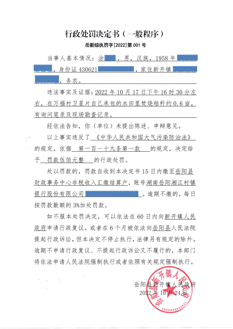 新开镇行政处罚决议书