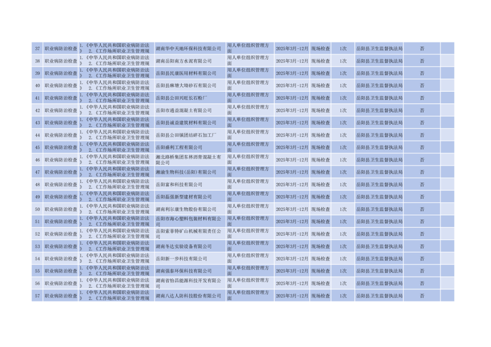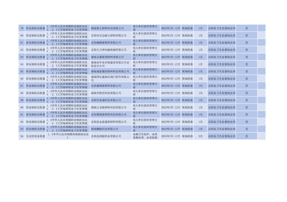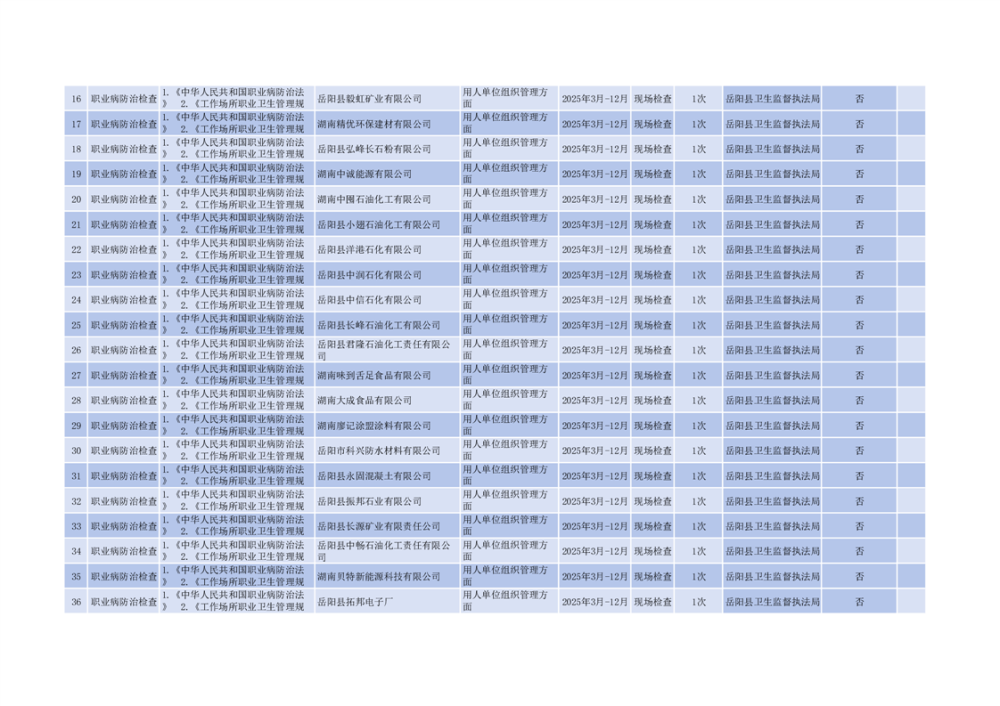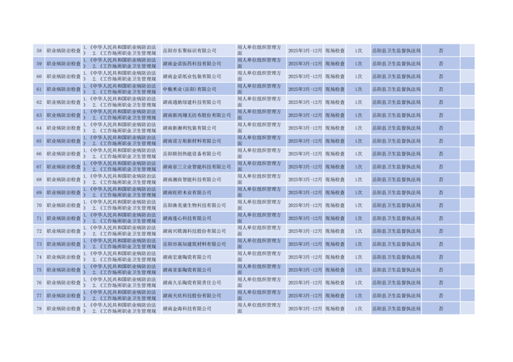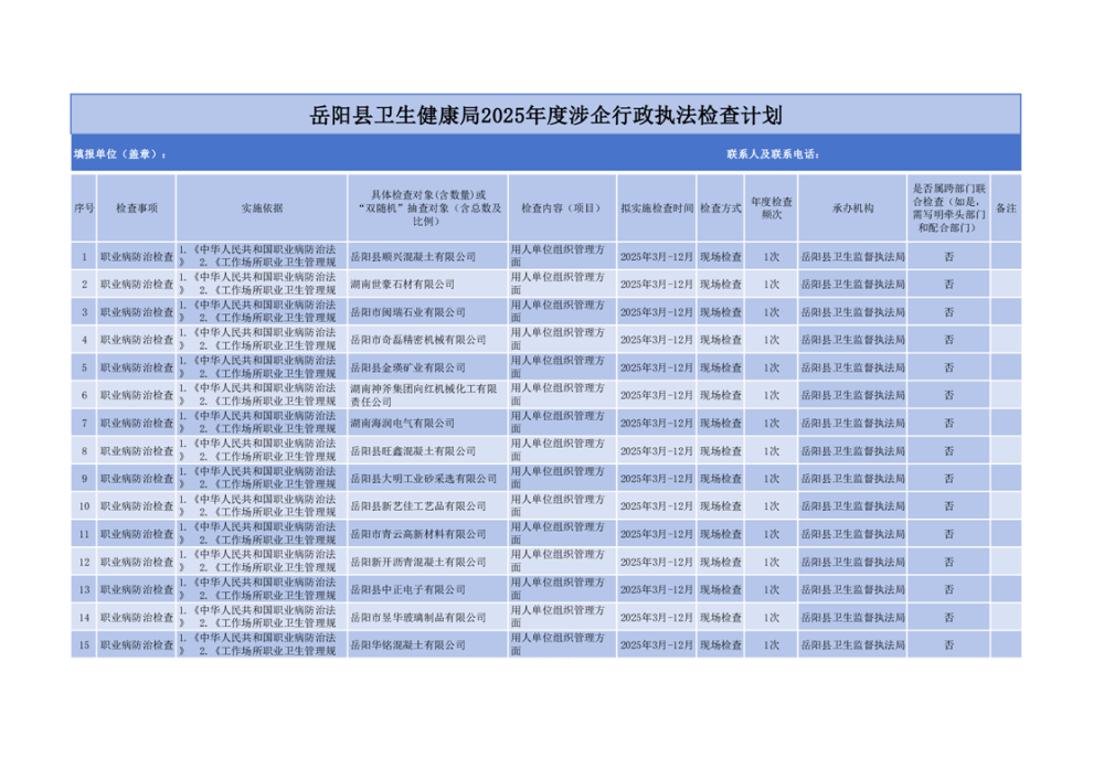 岳阳县卫生健康局2025年度涉企行政执法检查计划