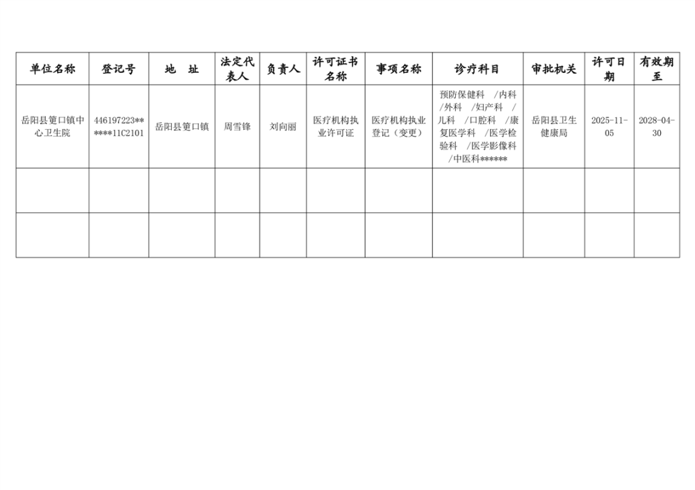 岳阳县卫生健康局2025年11月医疗机构执业许可公示