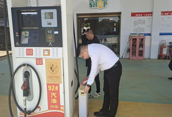 黄沙街镇镇长廖焱丰带领应急办对黄沙街镇油站、汽站开展“五一”节前安全检查。