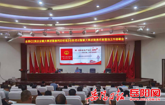 5月16日下午,岳阳县应急管理局组织各乡镇(办事处)、园区安环负责人、全县工贸企业主要负责人召开全县《工贸企业重大事故隐患判定标准》业务培训暨重大事故隐患排查整治工作部署会。岳阳县应急管理局局长周立雄参加。