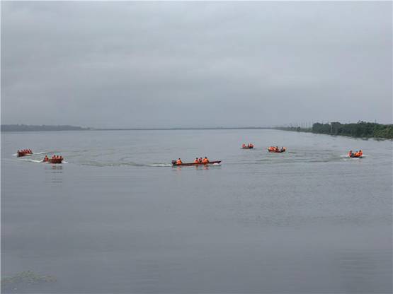 在巡堤查险演练中,巡逻人员列队整齐,井然有序地进行查险工作;在管涌险情现场处置演练时,60名抢险队员跑步进入现场,迅速开始抢险;在应急排涝演练中,县综合应急救援队火速进场,用移动式水泵进行排涝;在水上救援演练过程中,六艘冲锋舟对湖中目标假人开展救援。整个演练中,各组队员反应迅速、协同作战,演练达到了预期的效果。