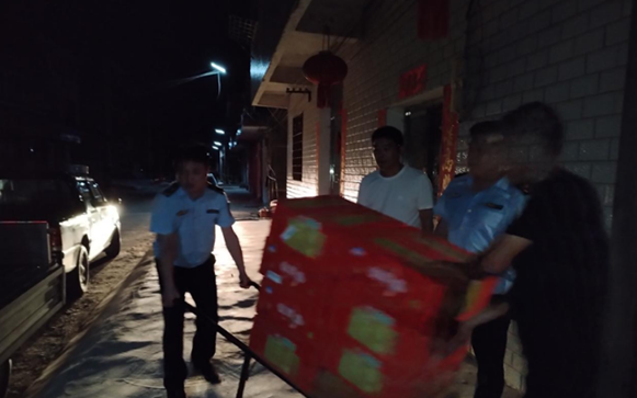 “筻口居委会桥头某仓库内存在一处涉嫌非法储存烟花爆竹的窝点,存在重大安全隐患。”7月2日,岳阳县筻口镇应急办接群众举报,第一时间组织执法力量,联合派出所、市监所赶往现场对举报情况进行核实。