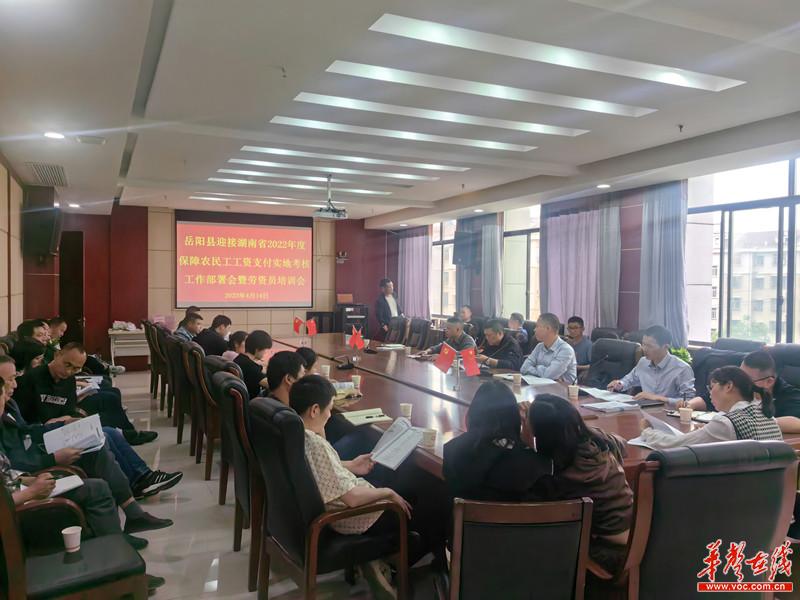 华声在线4月15日讯(通讯员 张涛 易明)“建设领域人工费拨付周期不得超过一个月;人工费占比是当月完成工程量的15%-30%,根据各行业实际情况如实向建设单位申报。”4月14日,湖南省根治欠薪实地考核工作部署会暨劳资员培训会在岳阳县人力资源和社会保障局举行。岳阳市劳动保障监察支队、岳阳县人社局、县住建局和全县所有在建项目负责人、劳资员共50余人参加。