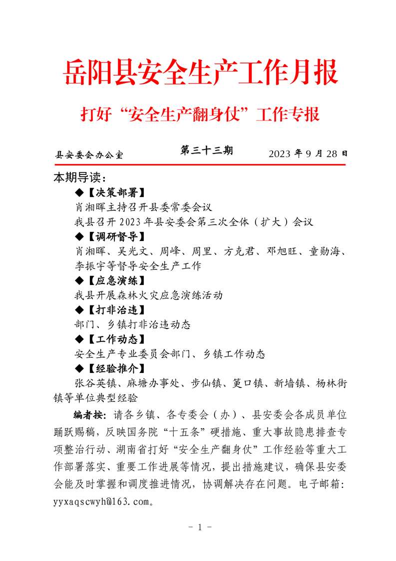岳阳县打好安全生产翻身仗工作专报(三十三期)