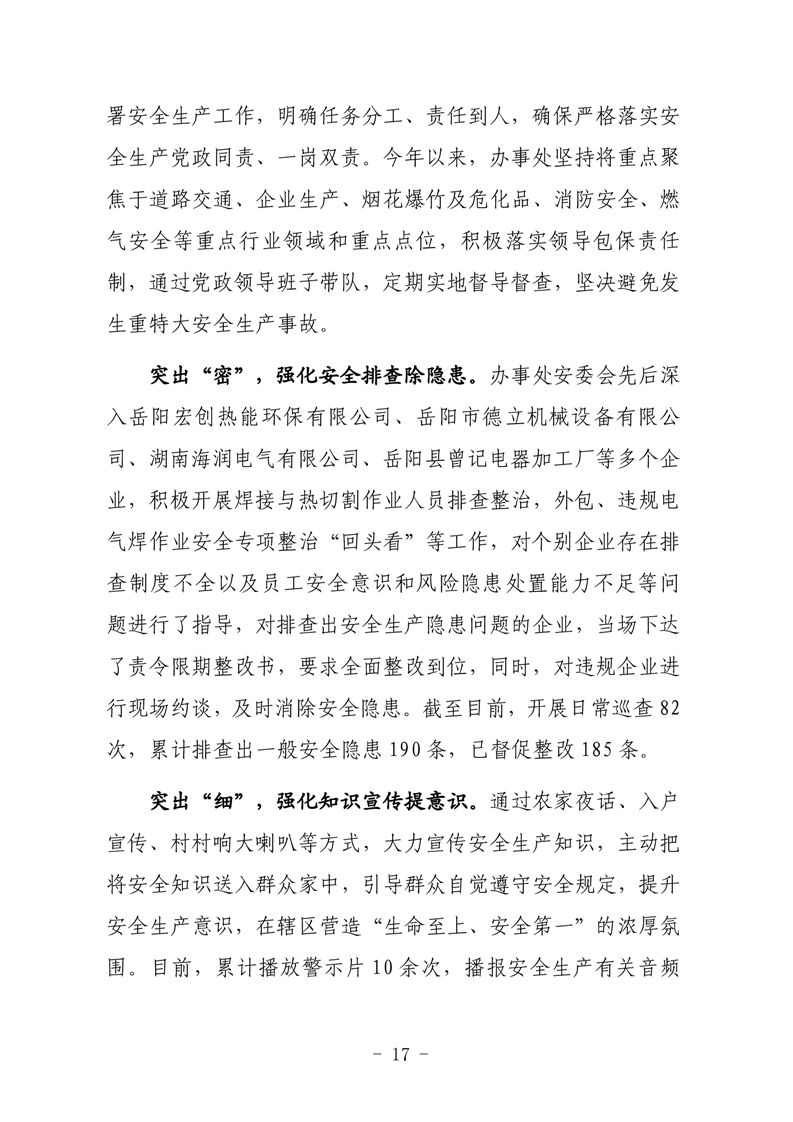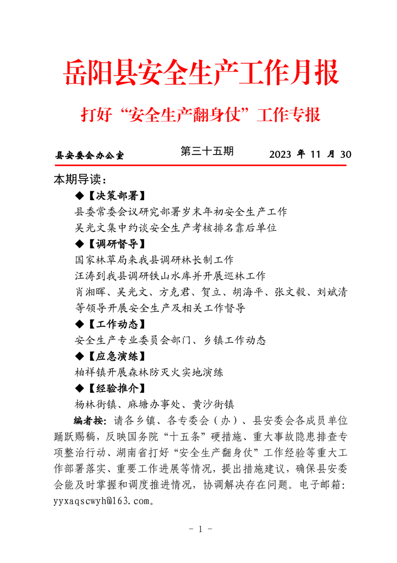 岳阳县打好“安全生产翻身仗”工作专报(三十五期)