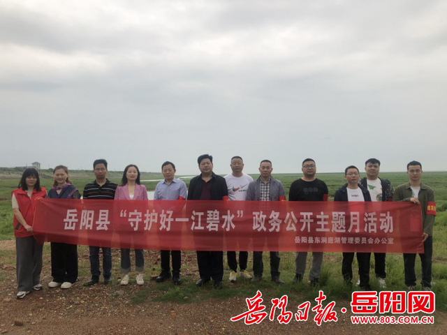 岳阳日报全媒体讯(通讯员 施华兵)4月18日,岳阳县湖管系统党员干部在东洞庭湖岸线开展了政务公开主题月活动,主题为“守护好一江碧水”。岳阳县委常委、县委办主任王靖和副县长张文毅到场督导。