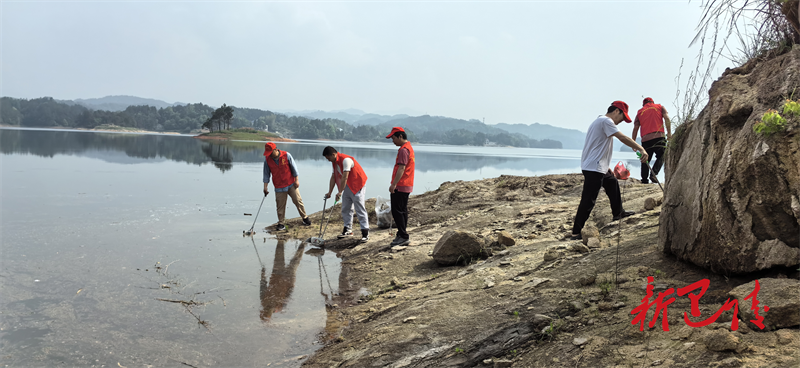 活动中,工作人员用扫帚、簸箕、火钳等作业工具,划分区域、分工合作,清理过后的岸边白色垃圾通过垃圾车运送至垃圾填埋场,经过一上午的努力,铁山水库沿岸又恢复了应有的干净整洁,生态环境得到有效保护。