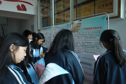 “同学们,今年的资助政策有了新变化,从2025年春季学期起,普通高中国家助学金平均资助标准由每年2000元提高到2300元。扩大了中等职业学校国家助学金覆盖面,提高了资助标准!”上午9:40分,恰逢学生下课时间,县教体局行政审批股、资助中心的工作人员手拿家庭经济困难学生资助贴士和致全县学生家长的一封信的宣传单,站在临时搭建的流动咨询台前,声音洪亮地为学生们讲解。活动现场,“学前教育资助政策”“义务教育两免一补”“普通高中资助政策”“中等职业学校资助政策”的展板吸引了同学们驻足观看,同学们边听讲解边讨论交流。
