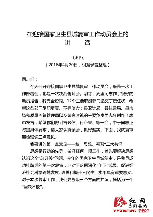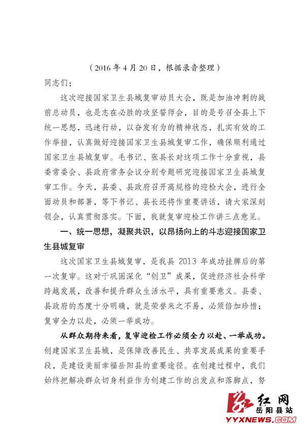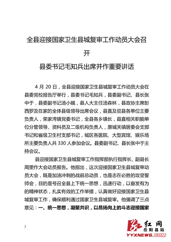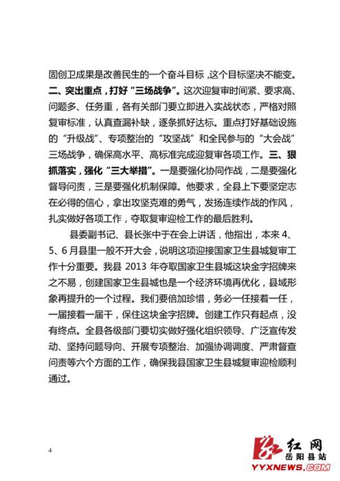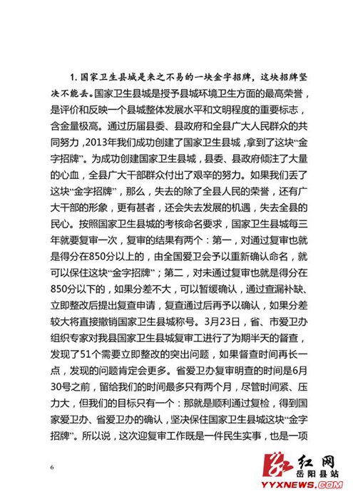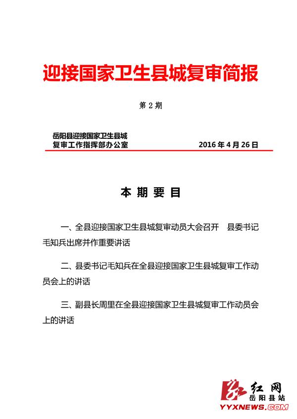 迎接国家卫生县城复审简报(第2期)