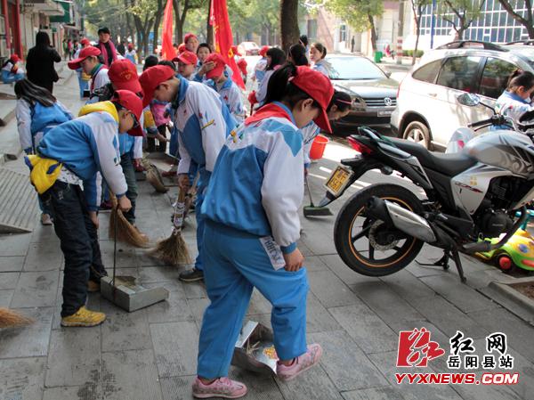 红网岳阳县站3-24讯(分站记者 唐荣平 彭会 陈嵬)3-21下午,阳光普照,岳阳县城处处都是热火朝天的义务劳动场景——从县四大家领导班子到县直部门、各乡镇机关干部及中小学校学生等近万人志愿者走上街头,参加到“环境卫生整治”志愿服务活动中,对辖区环境重点整治区域进行了集中的卫生清扫,将创建全国文明县城志愿服务活动引向深入。
