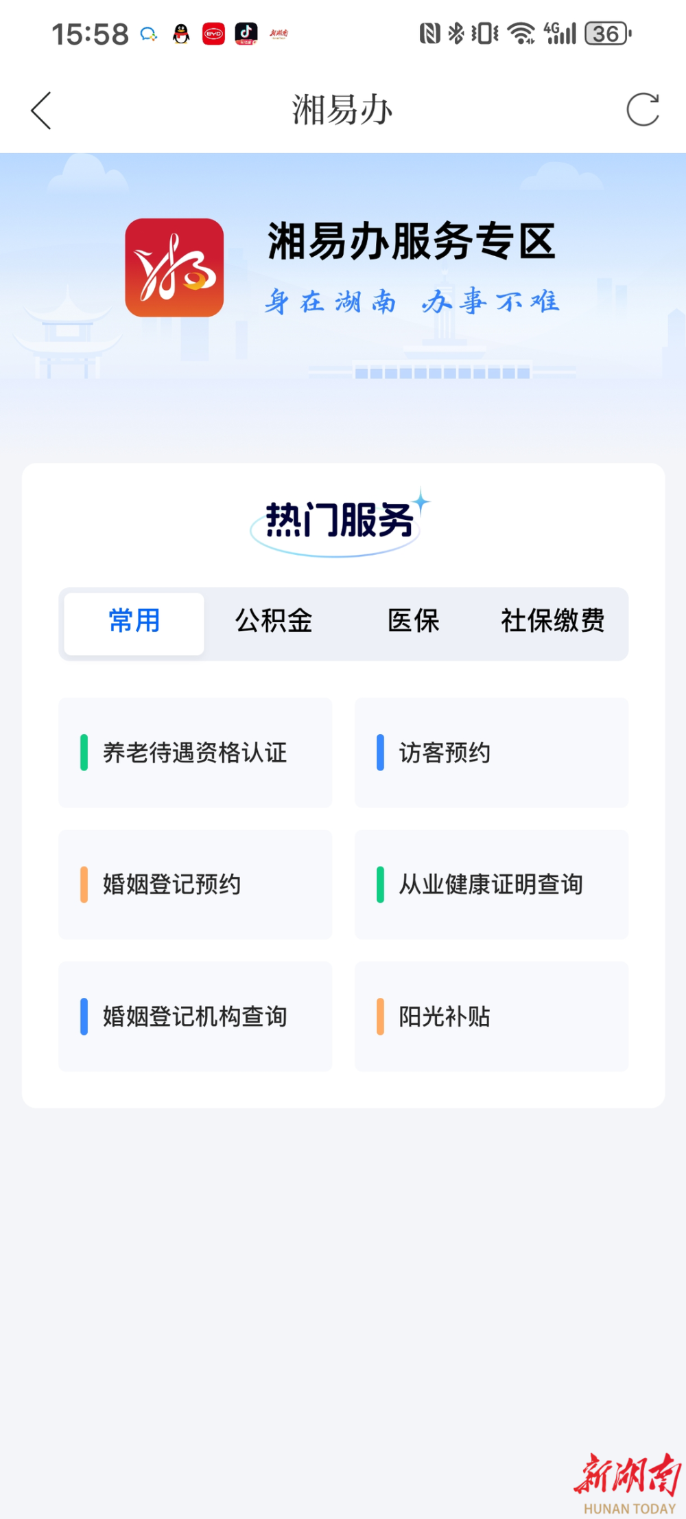 “湘易办”首页金刚区已上线新湖南资讯