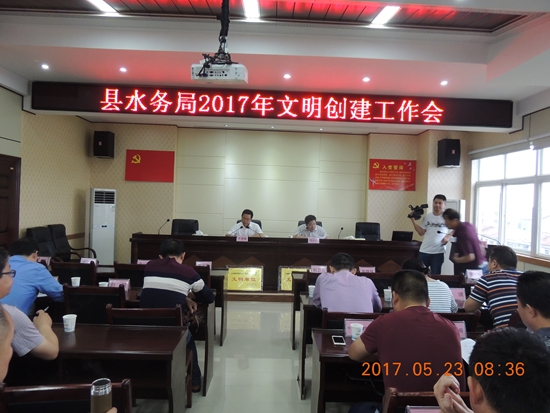 5-23,县水务局组织召开全系统2017-度文明创建工作会议,水务局机关工作人员、局直单位负责人共约100余人参加会议。会上,党委书记、局长李凌峰作了水务系统文明创建工作报告,总结了过来创建工作取得的成绩,并对今-的文明创建工作做了部署和要求。会上,还表彰了2016-度文明创建工作先进单位、先进工作者和文明家庭。(水务局办公室)