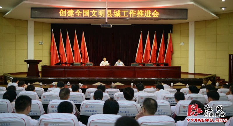 红网岳阳县站8-13讯(分站记者 陈嵬 许伟军)8-13,我县召开创建全国文明城市工作推进会,深入查找前期我县在全国文明城市创建工作中存在的问题和不足,分析当前形势,对下步创建工作进行再部署、再强调。县委副书记汤小娥主持会议,县委常委、宣传部长喻飞跃作主题报告。