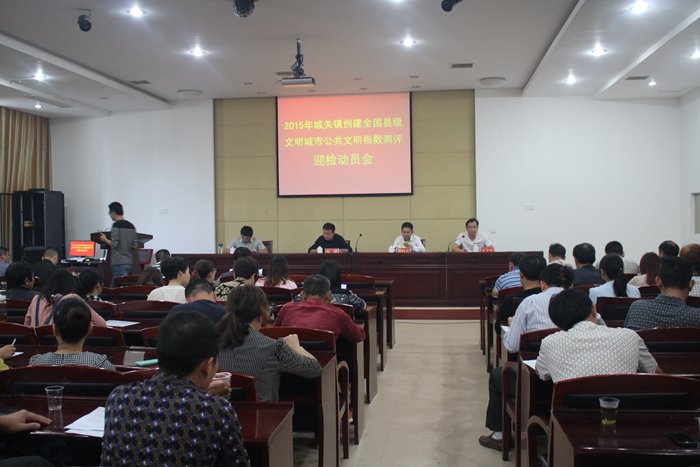 10-24上午,在县委党校多功能厅,城关镇召开创建全国县级文明城市公共文明指数测评迎检动员会,全镇全体党政领导、镇属部门负责人、全镇18个社区居委会全体干部、联点干部、资料员共143人参加会议。
