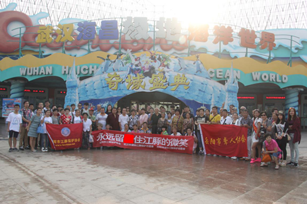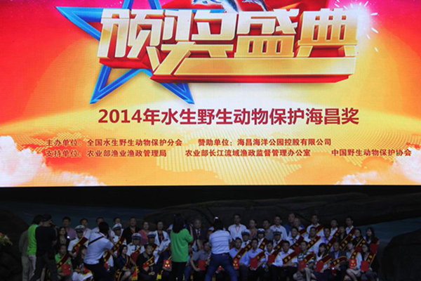 国际聋人节期间,岳阳市聋人协会与武汉市聋人协会130名聋人朋友,在岳阳市江豚保护协会的指导帮助下,在武汉海昌极地海洋世界,与来自各省渔业部门、世界自然基金会、野生救援、阿拉善SEE生态协会等单位代表和全国水生野生动物保护分会的代表们、武汉市中小学生代表、志愿者等共计800余人见证了由全国水生野生动物保护分会举办的“2014-水生野生动物保护海昌奖表彰大会”。