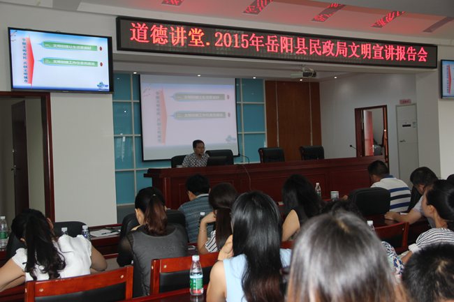 为了进一步提高干部职工的文明意识,强化文明创建工作,8-19上午,根据《关于开展文明宣讲“四进”活动的通知》精神和《县民政局2015-“道德讲堂”活动安排计划》安排,县民政局和县残联开展了文明宣讲道德讲堂活动,县委党校宣讲员袁艳进行了主题为《争做文明市民,共建文明城市》的宣讲。