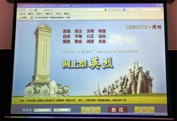活动中,同学们登陆中国文明网祭英烈专栏,为革命烈士献花、鞠躬,并纷纷留言抒发对革命先烈的崇高敬意和无限的哀思。