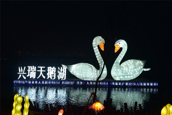其中,“一龙赶九龟”灯组全长150米,是迄今为止湖南省最长的水上长龙,外观大气磅礴,充满传奇色彩;令人点赞的“美德教育长廊”灯组设计10个传统教育经典故事,包括“闻鸡起舞”、“孟母教子”等,人物栩栩如生,集中体现了社会主义核心价值观内涵,让广大青少-寓教于乐;“侏罗纪探秘”灯组塑造了侏罗纪时期恐龙生活的真实场景,有体型巨大的霸王龙,也有憨态可掬的小恐龙,场景生动形象……除了原来的灯组,最近还新增了“--有余”、“天鹅之恋”、“茶博园”、“鲤鱼跳龙门”、“风铃”、“金色风铃”等6个灯组,为灯会增色不少。