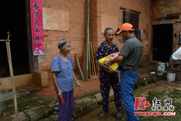 红网岳阳县站8-11讯(分站记者 许伟军)8-10,岳阳县网络文明传播指导中心与岳阳县微水爱心志愿者协会组织13名爱心志愿者走进张谷英镇,代表爱心志愿者肖女士将1000公斤大米送到20户贫困老人手中,并祝愿他们快乐生活。