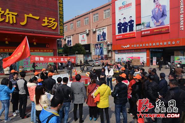 红网岳阳县站3-10讯(分站记者彭会 许伟军)3-913:30,岳阳县城东方盛世广场前爱心涌动,继2-28新墙镇“救救虎仔”爱心募捐活动开展后,又一场为虎仔募集医药费的爱心志愿活动正在灿烂的阳光下顺利进行着。