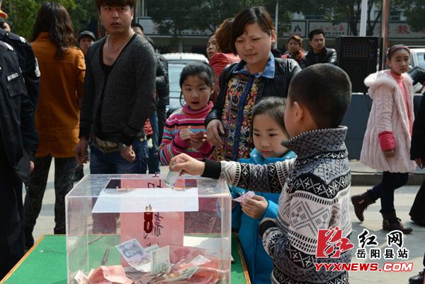 200元、50元、10元、1元、2角,市民们纷纷慷慨解囊,就连孩子们也捐献出了自己的零花钱,其中岳阳县民政局现场捐款3000元、微水爱心志愿者协会捐款1000元、金维纳老总捐款1000元。