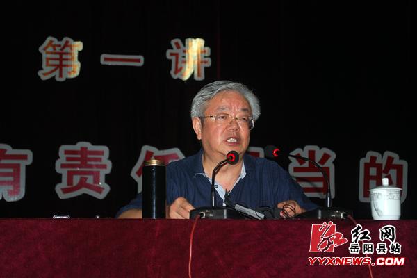 红网岳阳县站8-23讯(本站记者 吴拥民 彭会 陈嵬)8-22,岳阳县在县城天鹅影剧院举办“道德讲堂”活动启动仪式暨首场“道德讲堂”现场观摩会,活动邀请湖南省委宣传部原副部长、著名学者、湖湘文化的传播人郑佳明作了题为“责任文化与责任人生”的讲座。