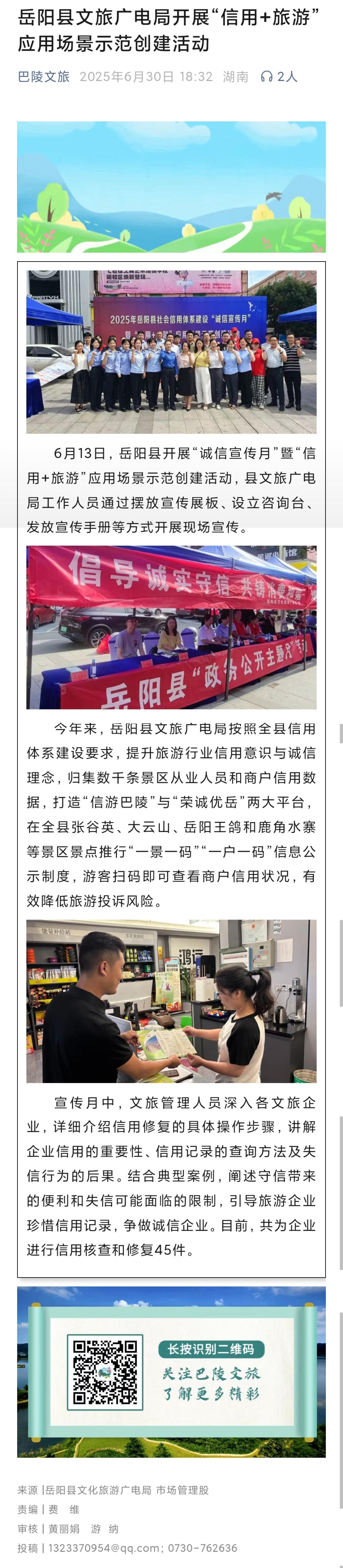 岳阳县文旅广电局开展“信用+旅游”应用场景示范创建活动