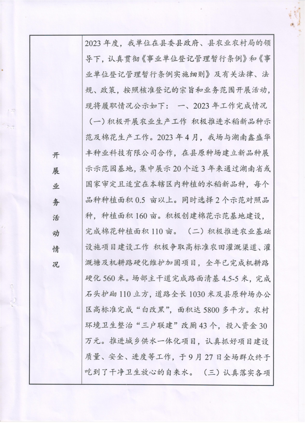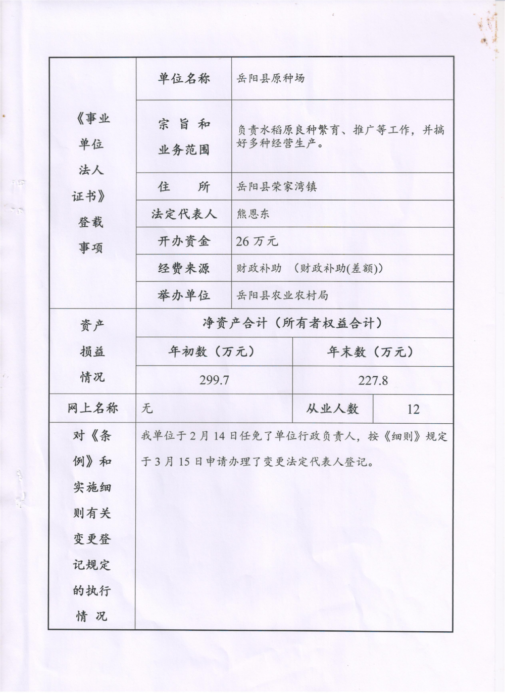 岳阳县原种场法人年度报告书